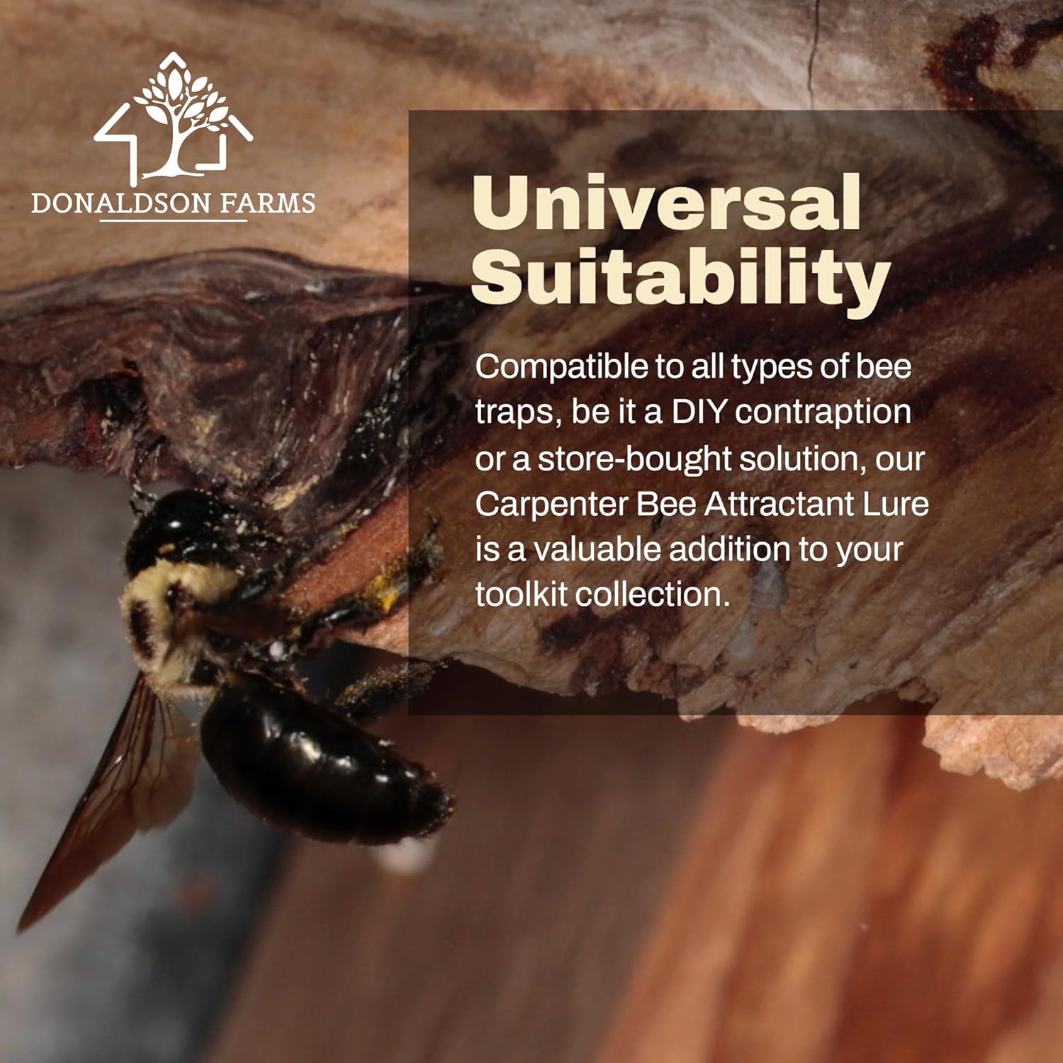 • Enhanced Attraction: Elevate your carpenter bee trapping game with our attractant, crafted with care at Donaldson Farms. Our lure is expertly formulated to entice those pesky carpenter bees effectively to your trap, boosting your trapping
